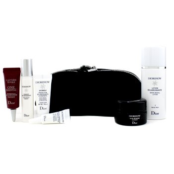 | Price : $128.00Diorsnow Travel Set: 1x White Reveal Lotion #2 Rich 50ml/1.7oz 1x White Reveal Essence 10ml/0.33oz 1x D-NA Reverse White Reveal Strengthening Night Creme 15ml/0.52oz 1x UV Shield White Reveal Moisturizing UV Protection SPF50 PA+++ 10ml/0.35oz 1x White Reveal Illuminating Eye Treatment 2ml/0.06oz 1x Capture Totale One Essential Skin Boosting Super Serum 10ml/0.33oz 1x Bag (Black) Ideal both for personal use & as a gift